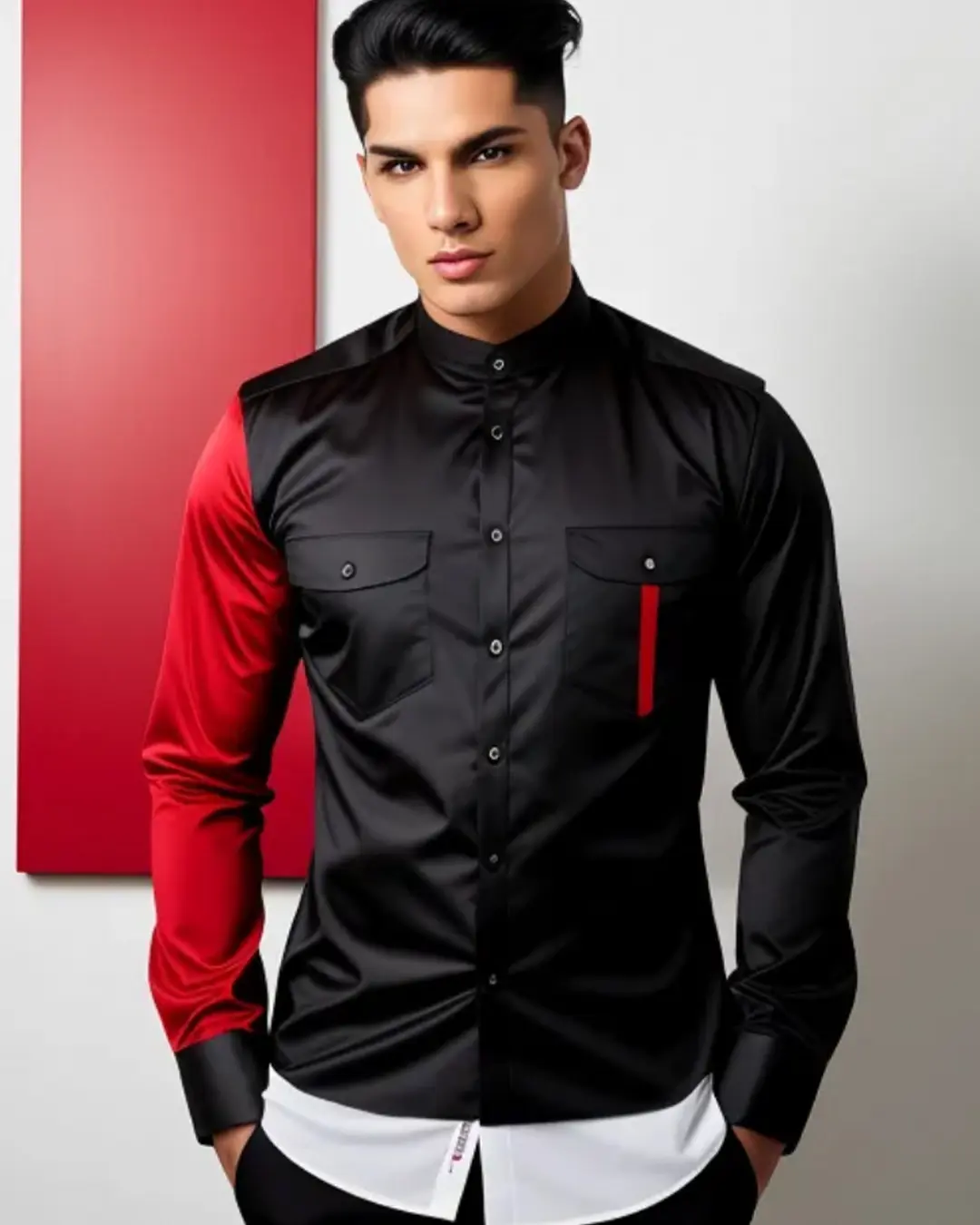 Men’s black shirt with contrast red and white