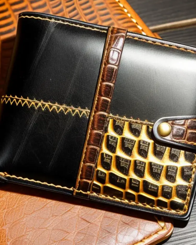 Men’s contrast panel brown leather croc wallet