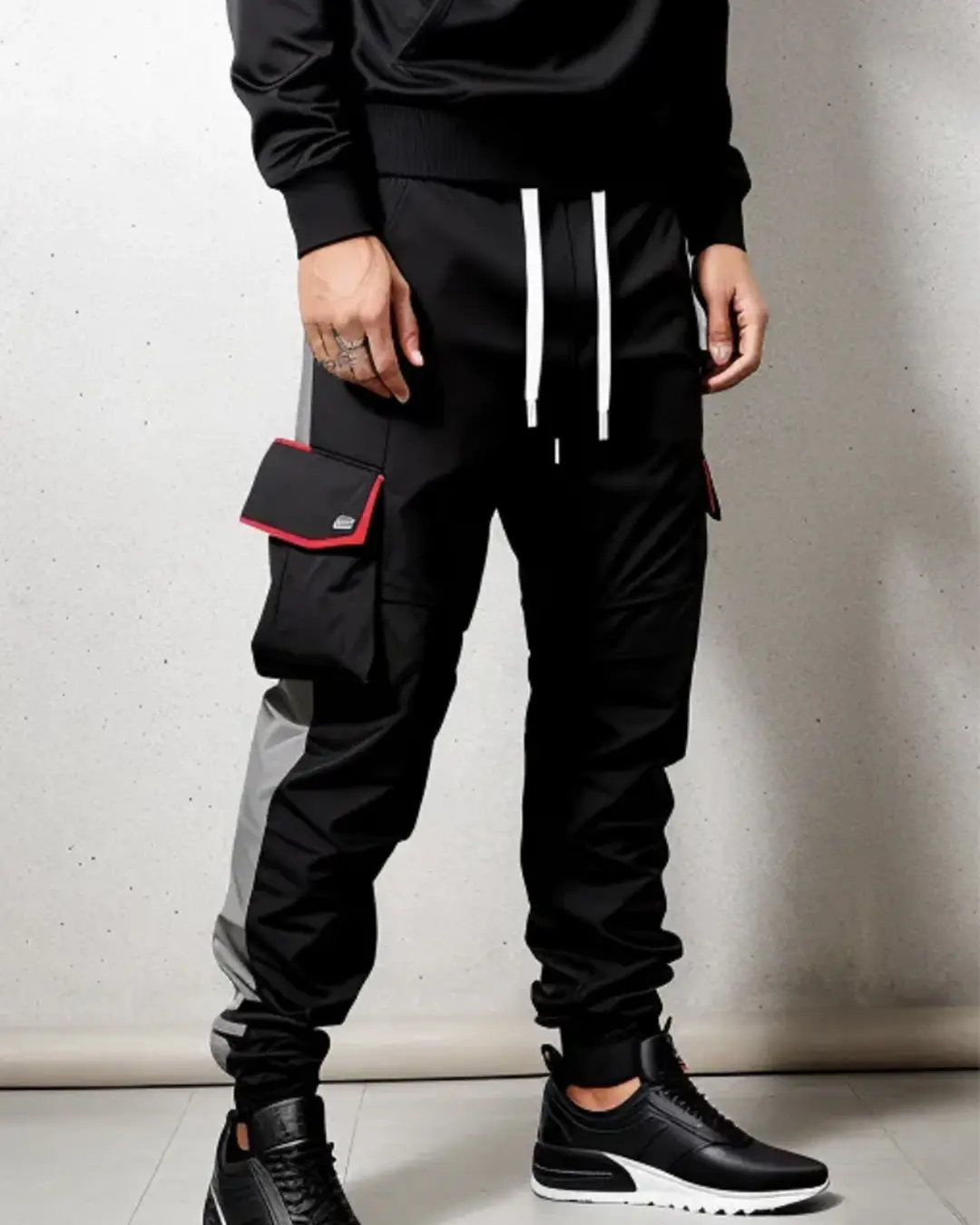 Men’s contrast black and grey sport workwear trouser with red detail