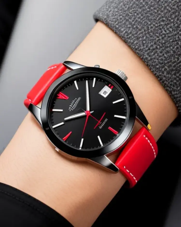 Men’s contrast red strap watch with contrast stitch