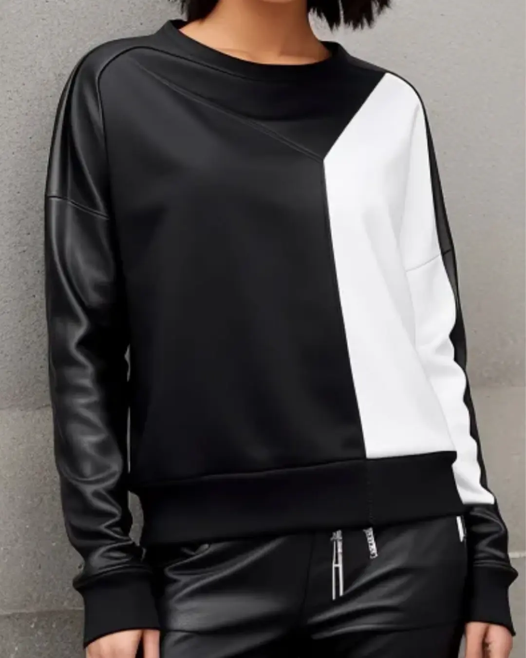 Women’s sweatshirt in contrast black and white with leather sleeves
