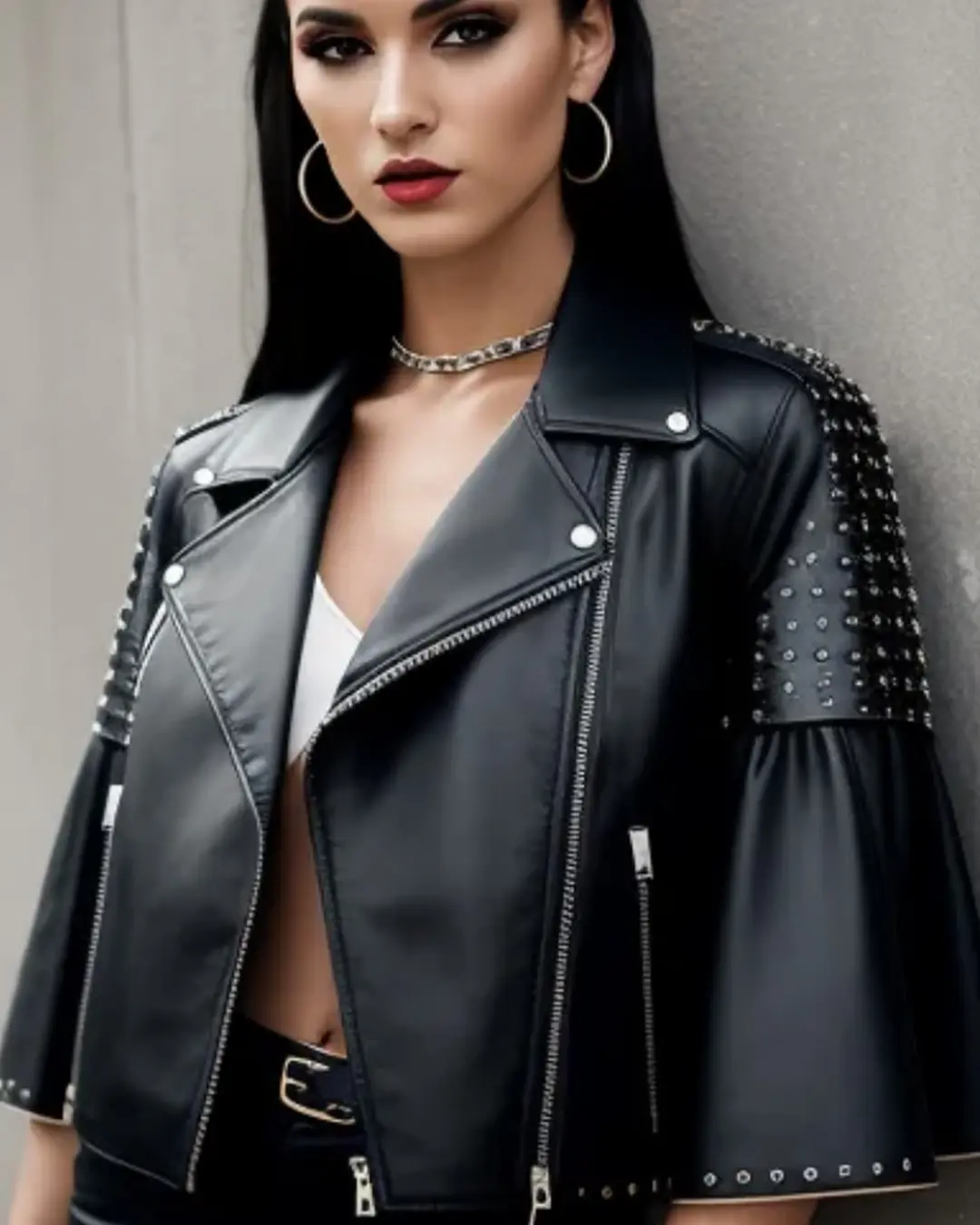 Cropped black leather jacket