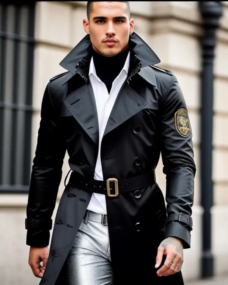 Men’s double breasted large collar black trench coat