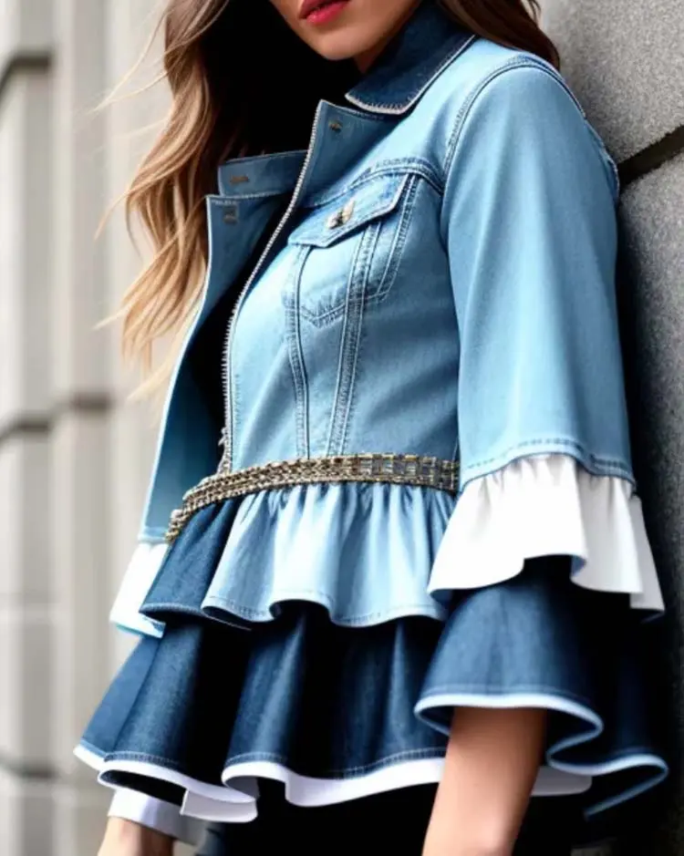 Be the first to review “Double layer peplum denim jacket”