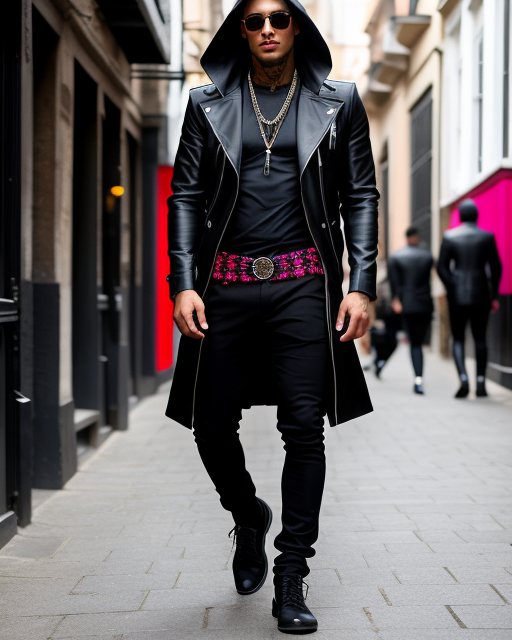 Men’s zip leather hooded black coat