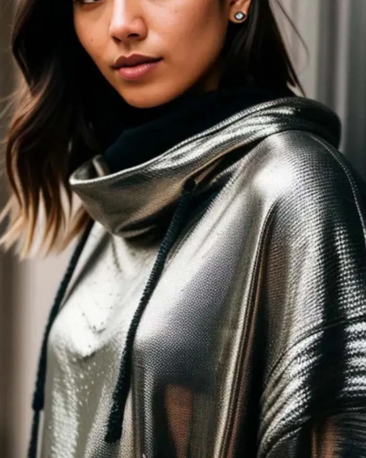 Hooded metallic sweatshirt