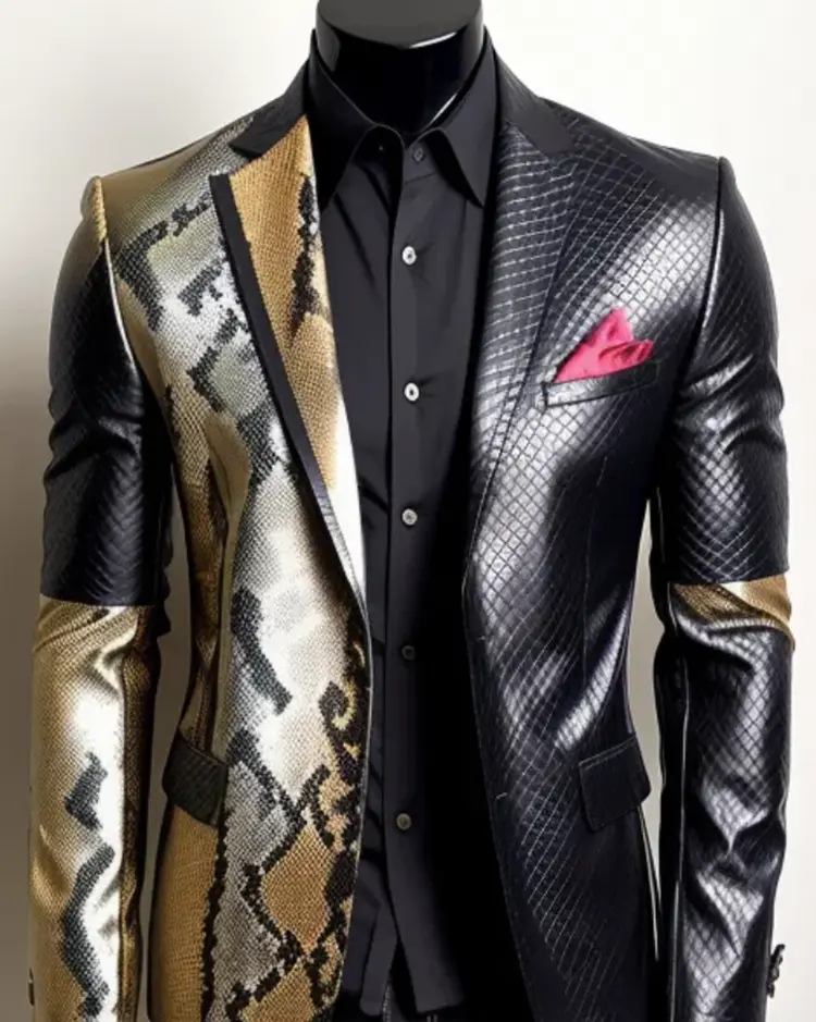 Men’s colour block leather tailored jacket in crocodile and snake print