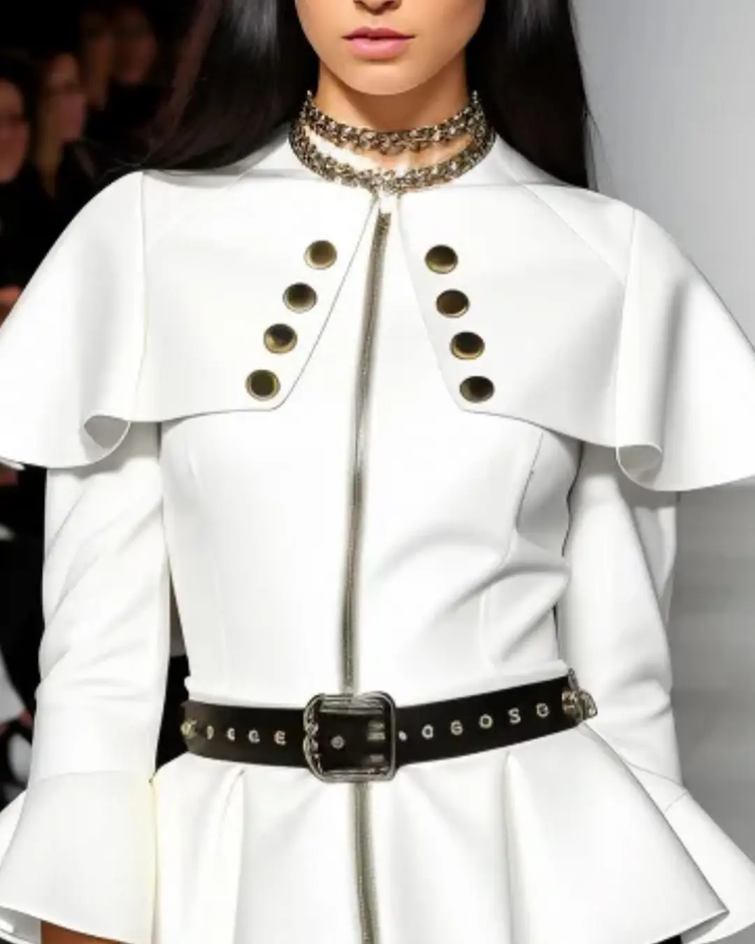 Women’s peplum Jacket in off-white with gold buttond