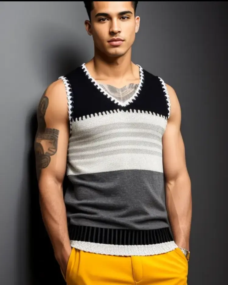 Men’s sweater vest in contrast grey, cream and black stripe