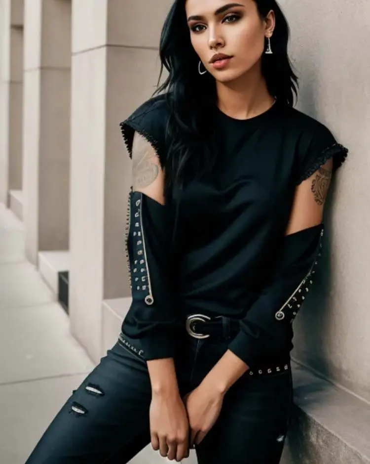 Women’s sweatshirt top with cutaway sleeves and embellishment
